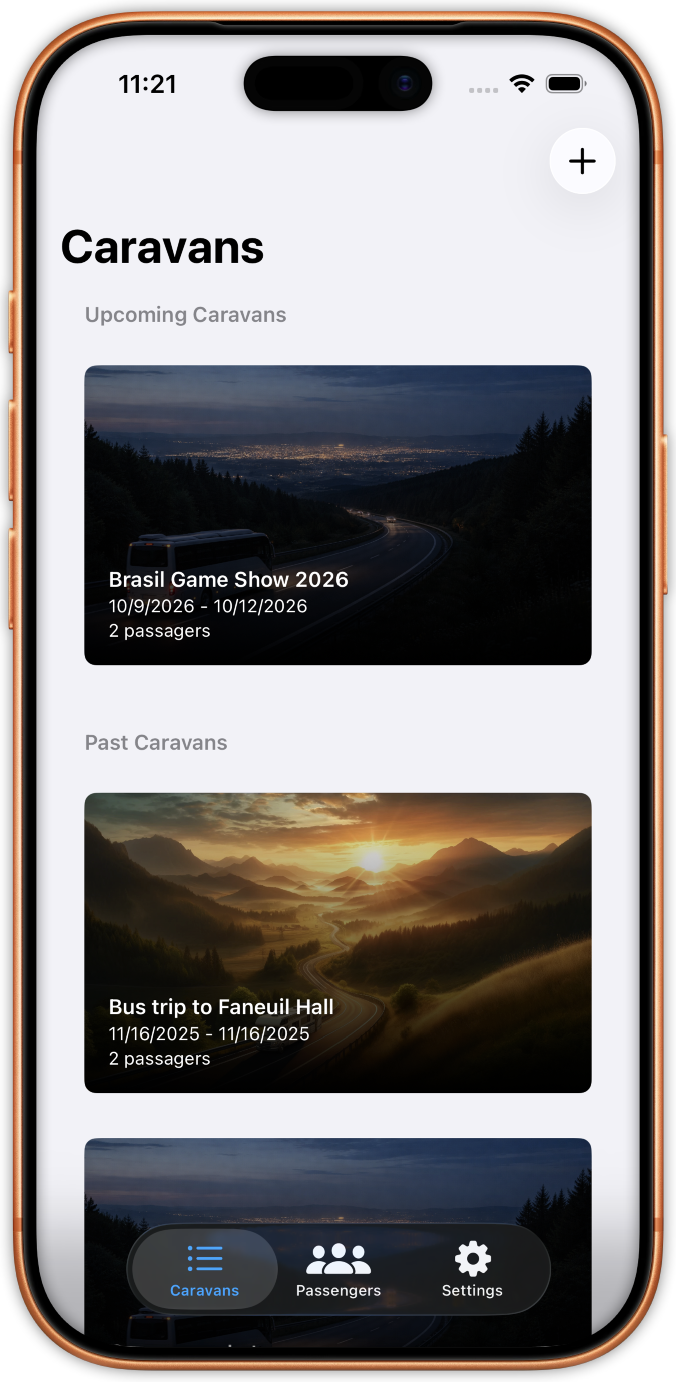 Organize viagens em grupo para shows, festivais e eventos. Gerencie passageiros, horários e comunicação em um só lugar.